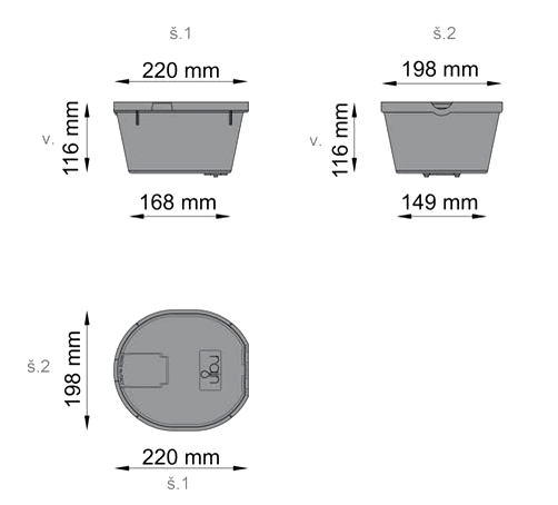 Rozmer: 168/220 x 149/198 x 116 mm (š1 x š2 x v)